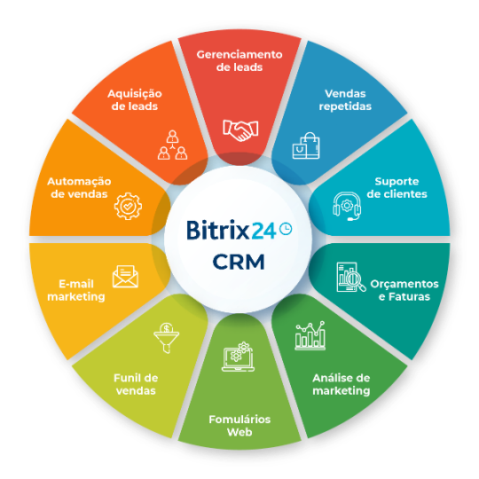O Bitrix24 reúne todos os canais de comunicação com o cliente em um único painel denominado Contact Center. Integrado ao CRM, ele permite que você acompanhe facilmente todas as interações com o cliente e colete dados de marketing acionáveis.